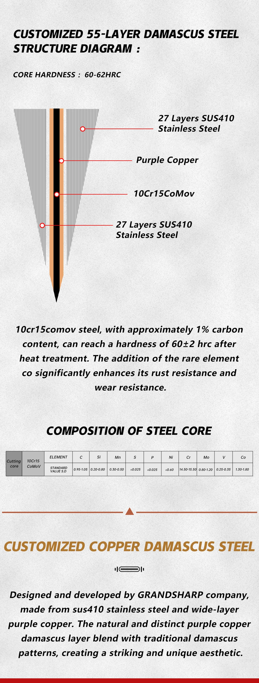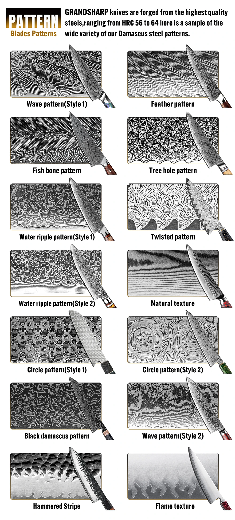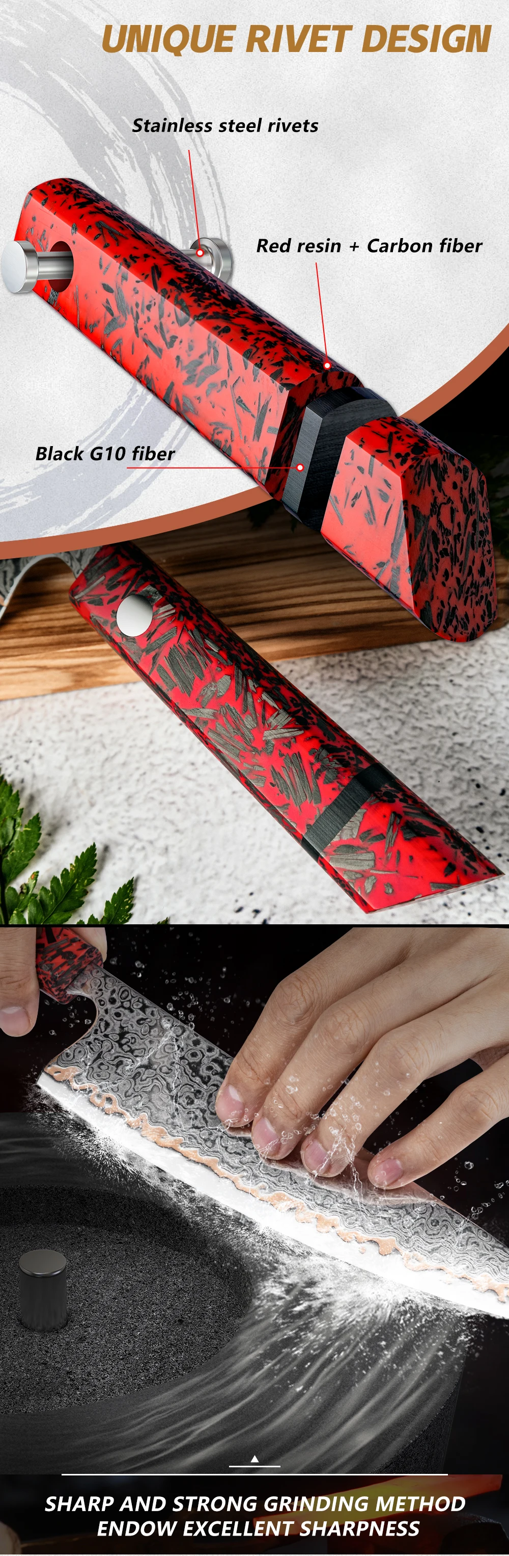 1-7PCS 55 Layers Copper Damascus Steel Chef Knife