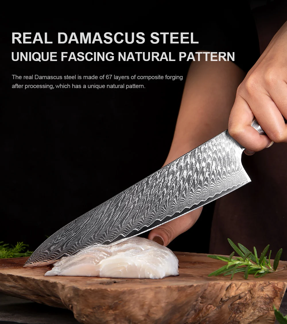 【High Quality Material】All knives' blade are made of Damascus steel, strong & durable.