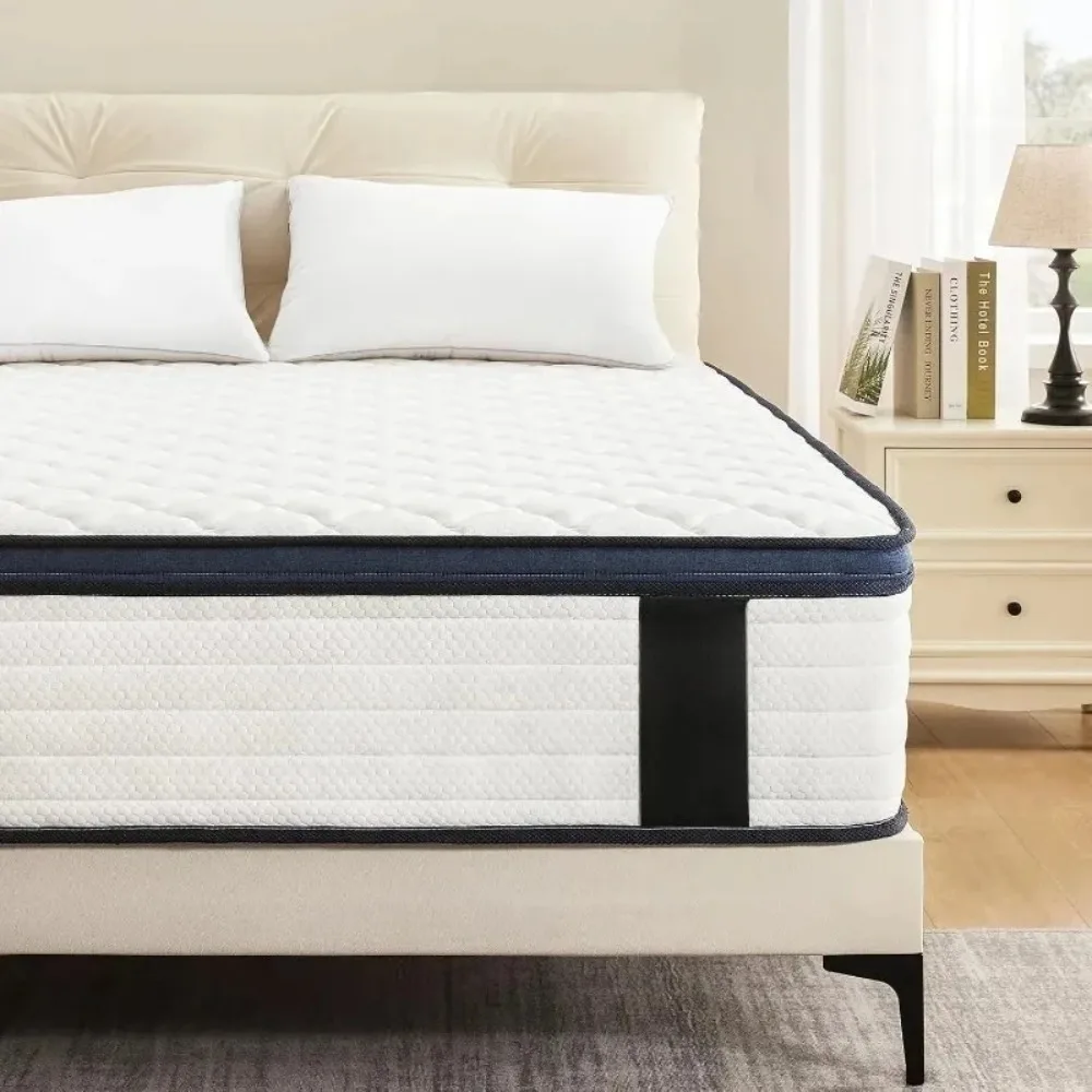 Premium Plush Comfort Layers: Our queen mattress features a supportive hybrid system topped with soft, high-density foam layers that cradle your body for exceptional comfort. The breathable materials enhance airflow, keeping the mattress cool and comfortable all night. This design helps regulate body temperature and prevents overheating for a restful sleep.