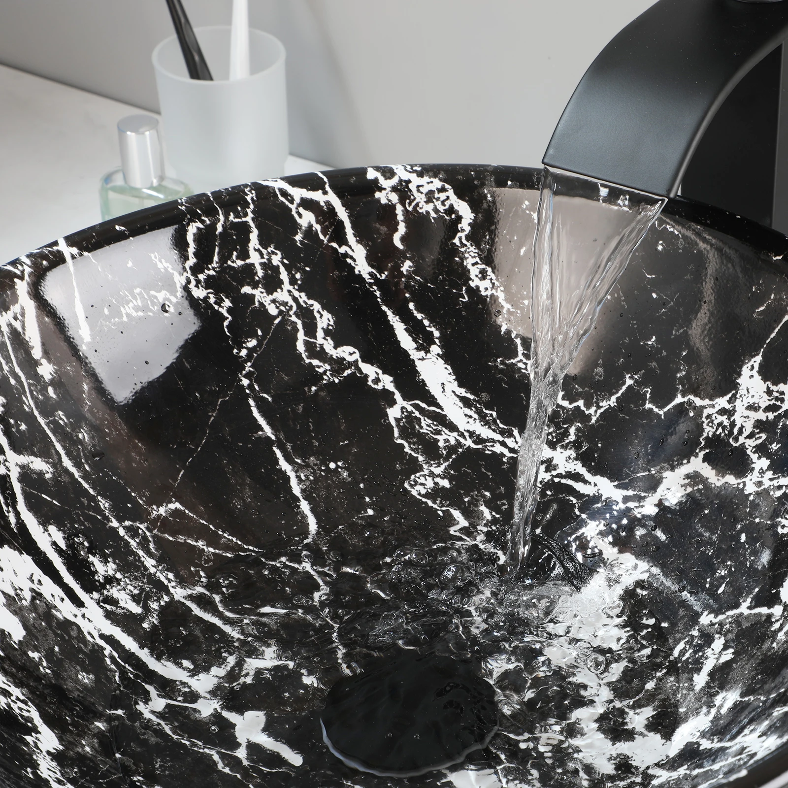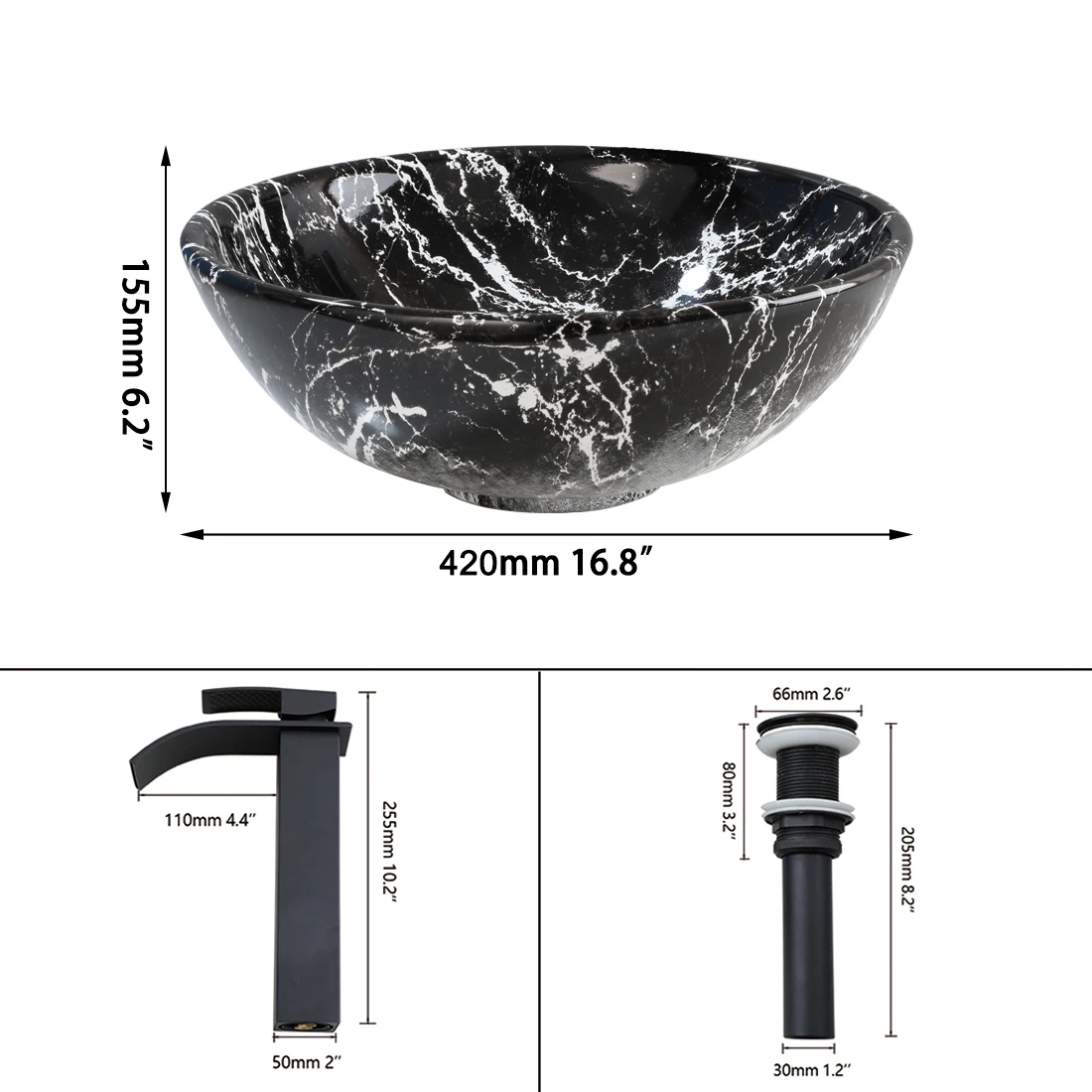 17'' Round Vessel Vanity Sink, Faucet, Drain Set