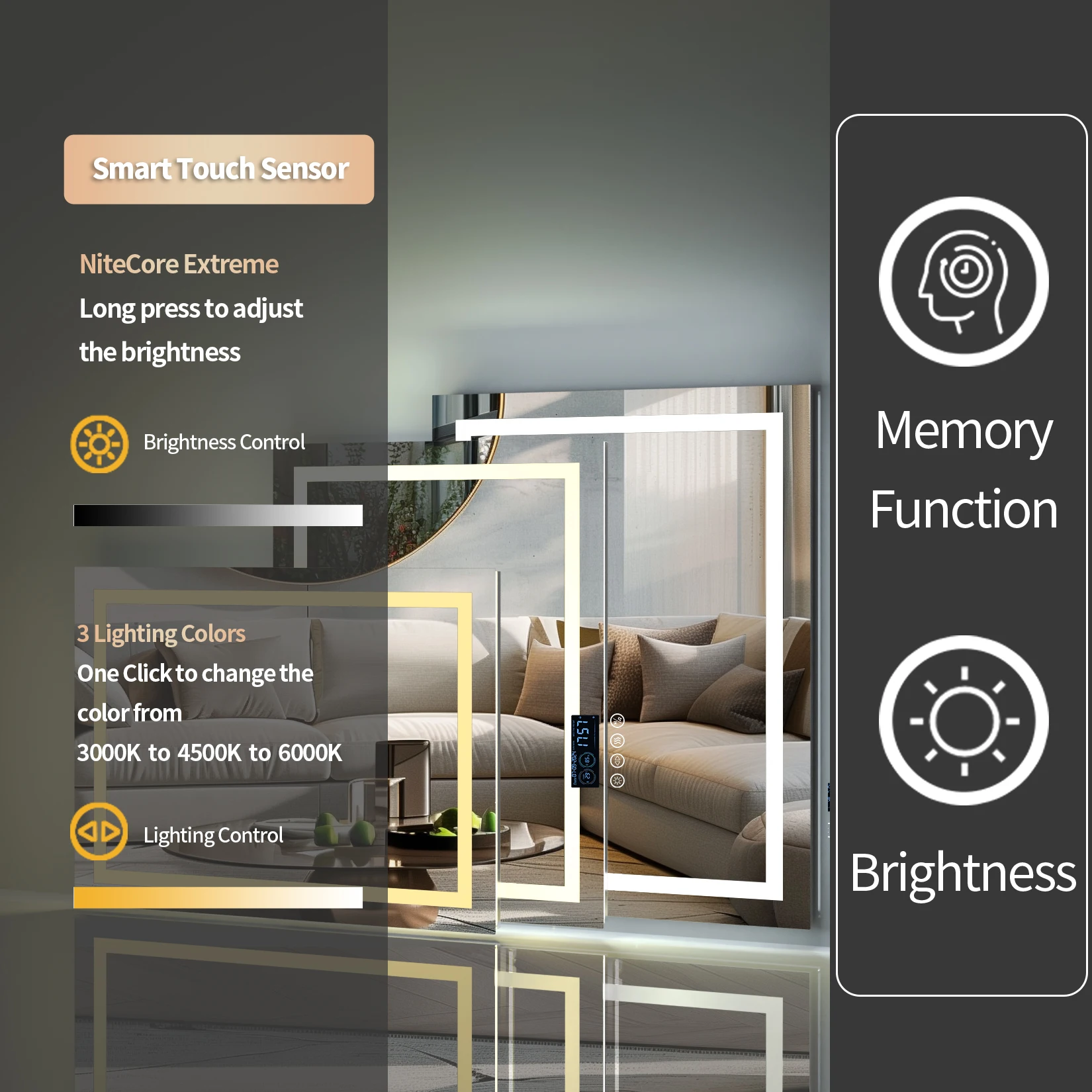 28x36 Lighted Mirror, Bluetooth Speaker Anti-Fog