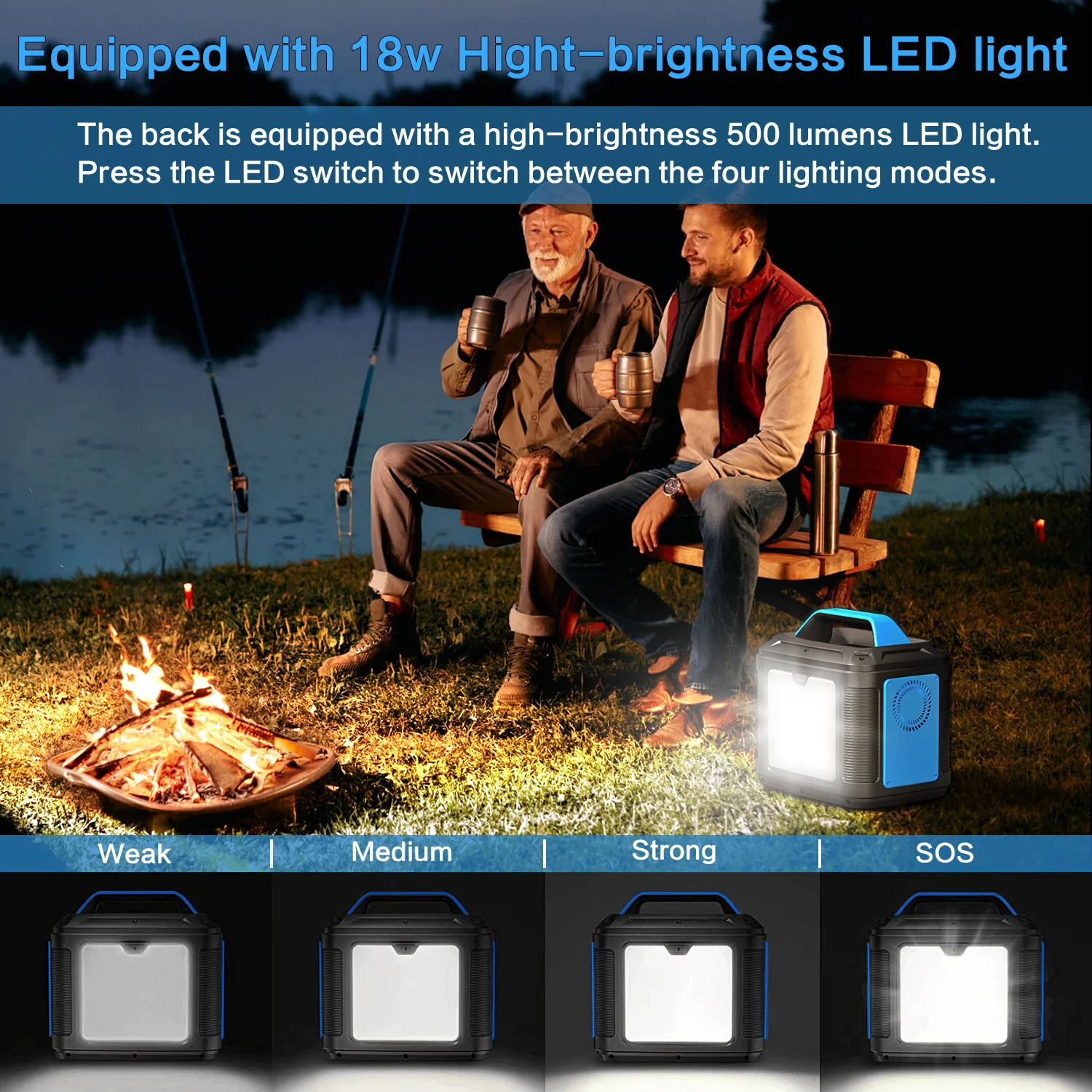 All-round outdoor power supply: 296Wh large-capacity AC/DC dual output port QC3.0 fast charging USB×2 4-mode LED lighting (low light → strong light →SOS), meet the charging of mobile phones, laptops, drones and other equipment, and are suitable for all scenarios of travel/camping/fishing/emergency
