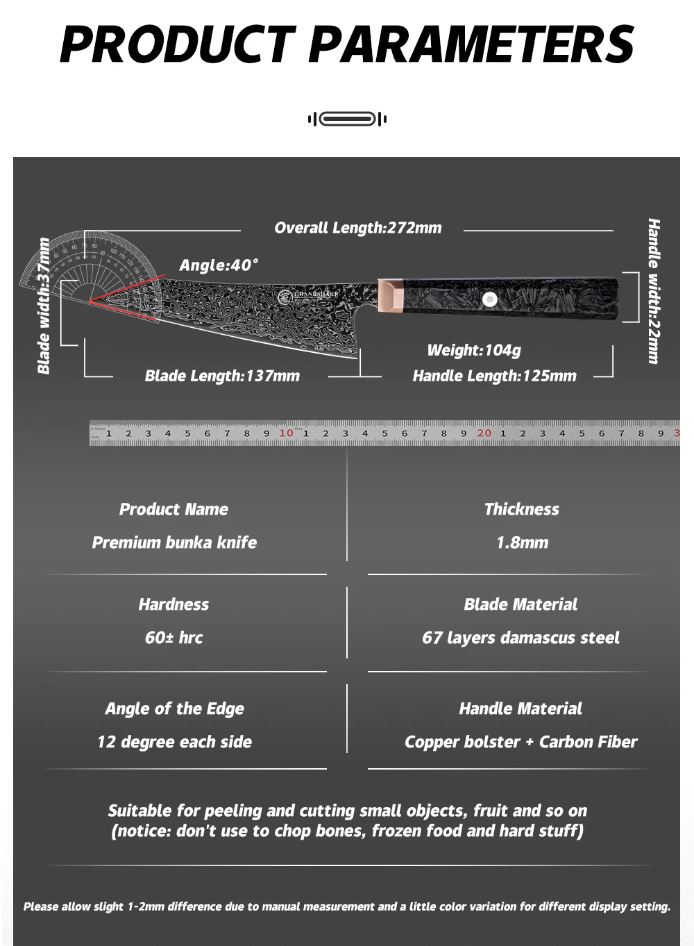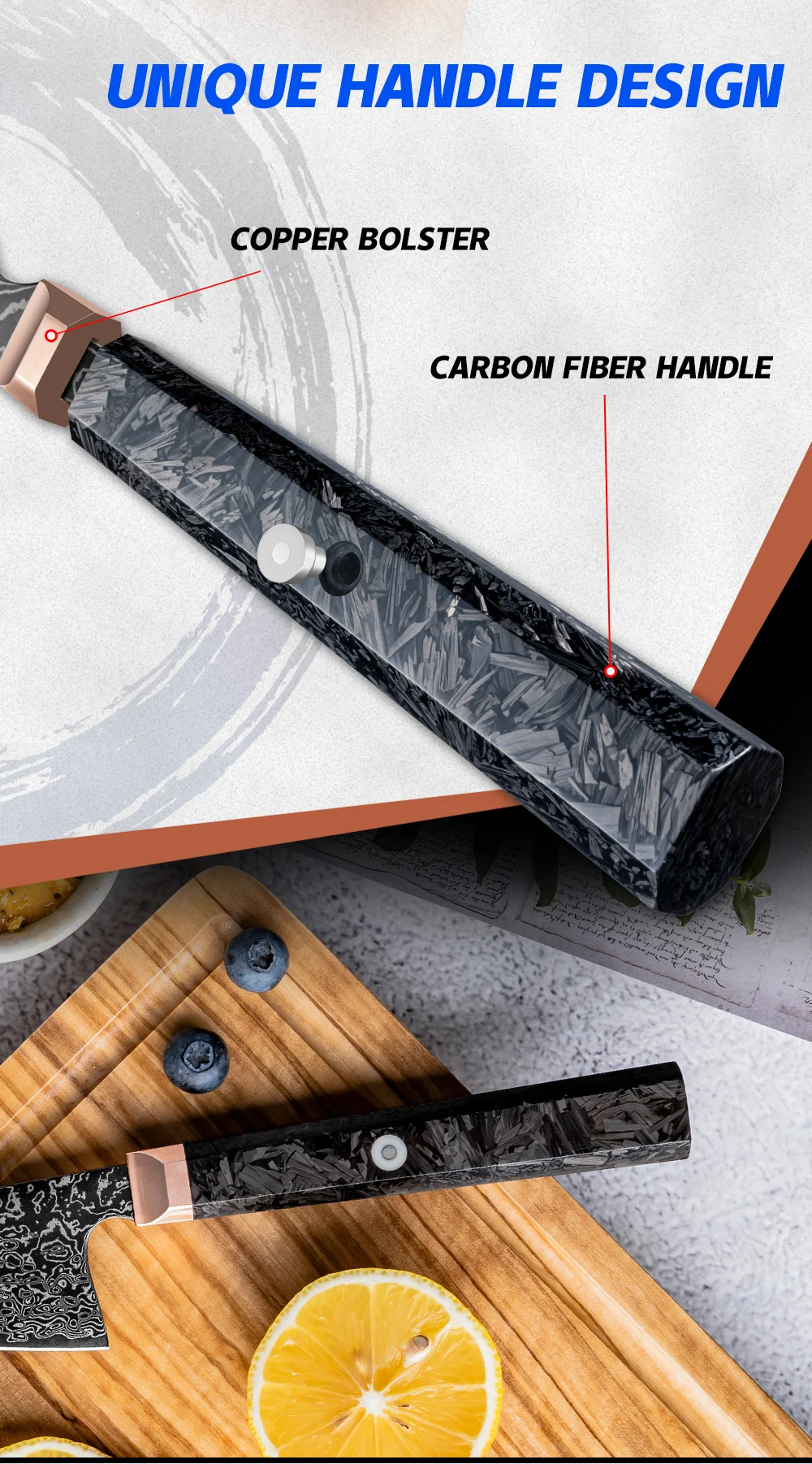 Handle Material: Copper Bolster +Carbon Fiber