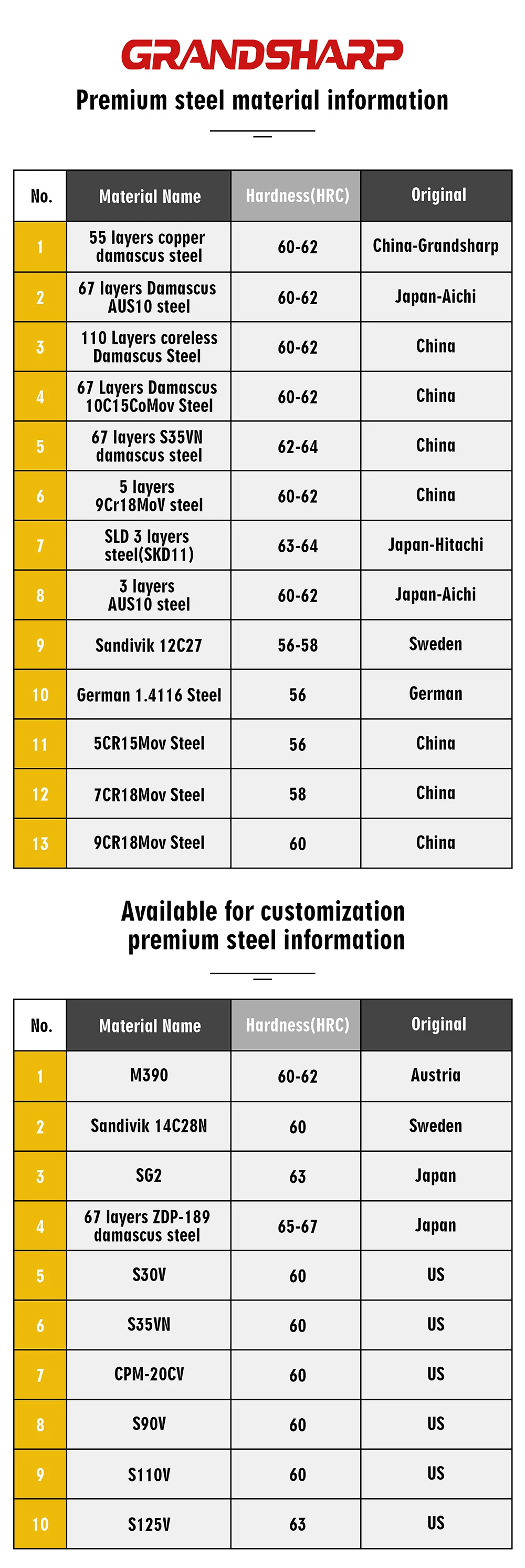 Hardness: 61-62HRC
