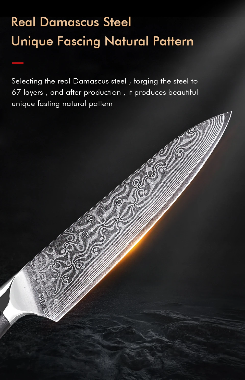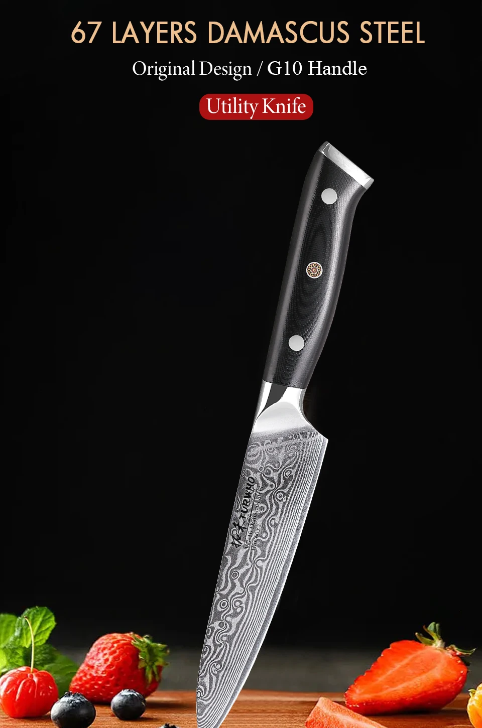 TURWHO 5-inch Utility Knife High Quality 67 Layer Damascus Steel Kitchen Cleaver Slicing Paring Knife Chef Cooking Tools G10 Handle