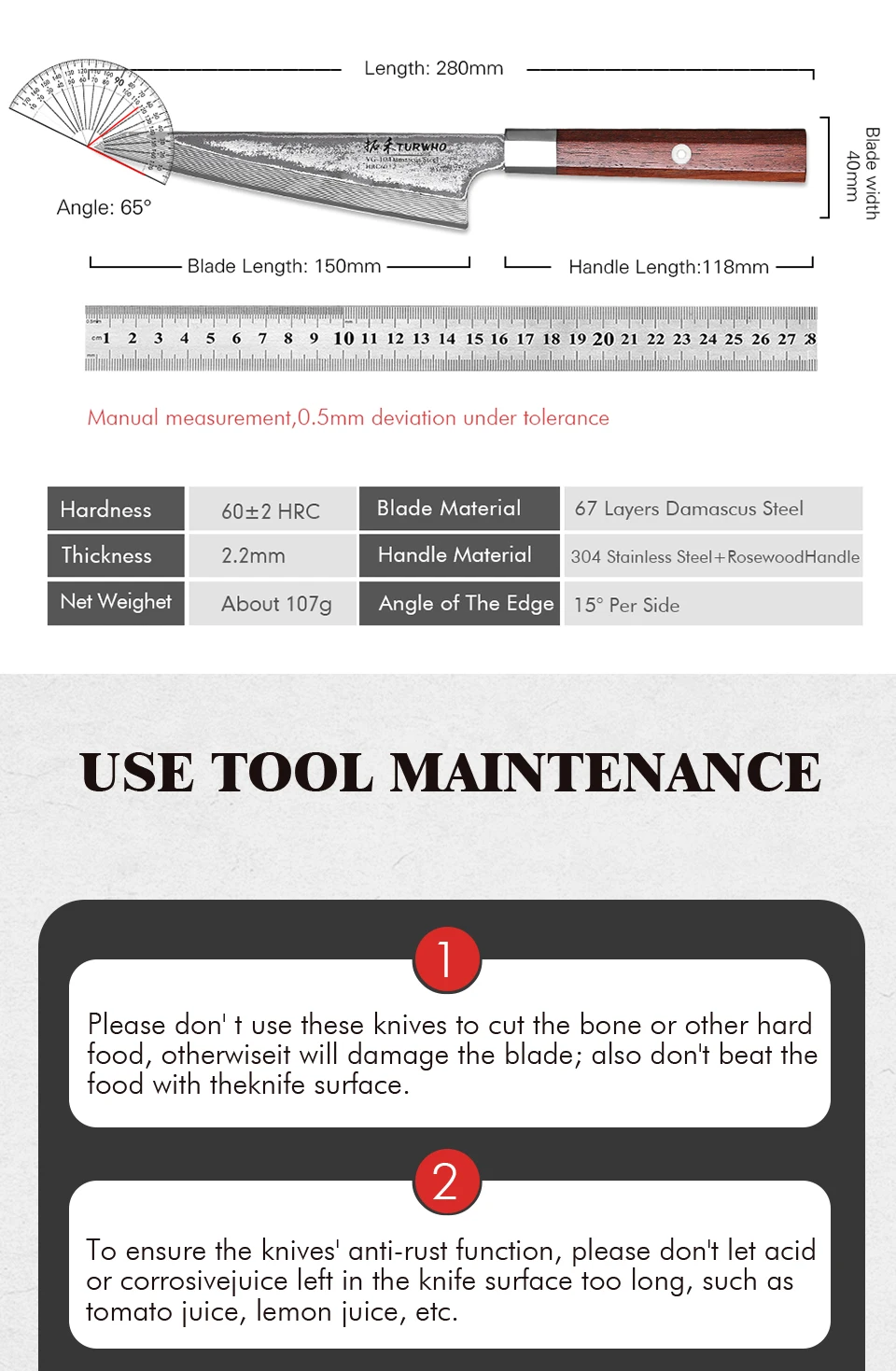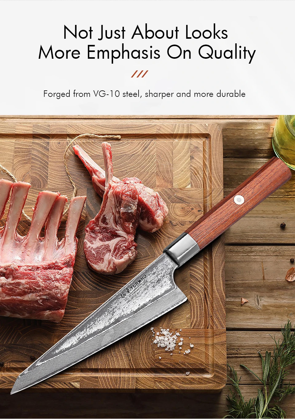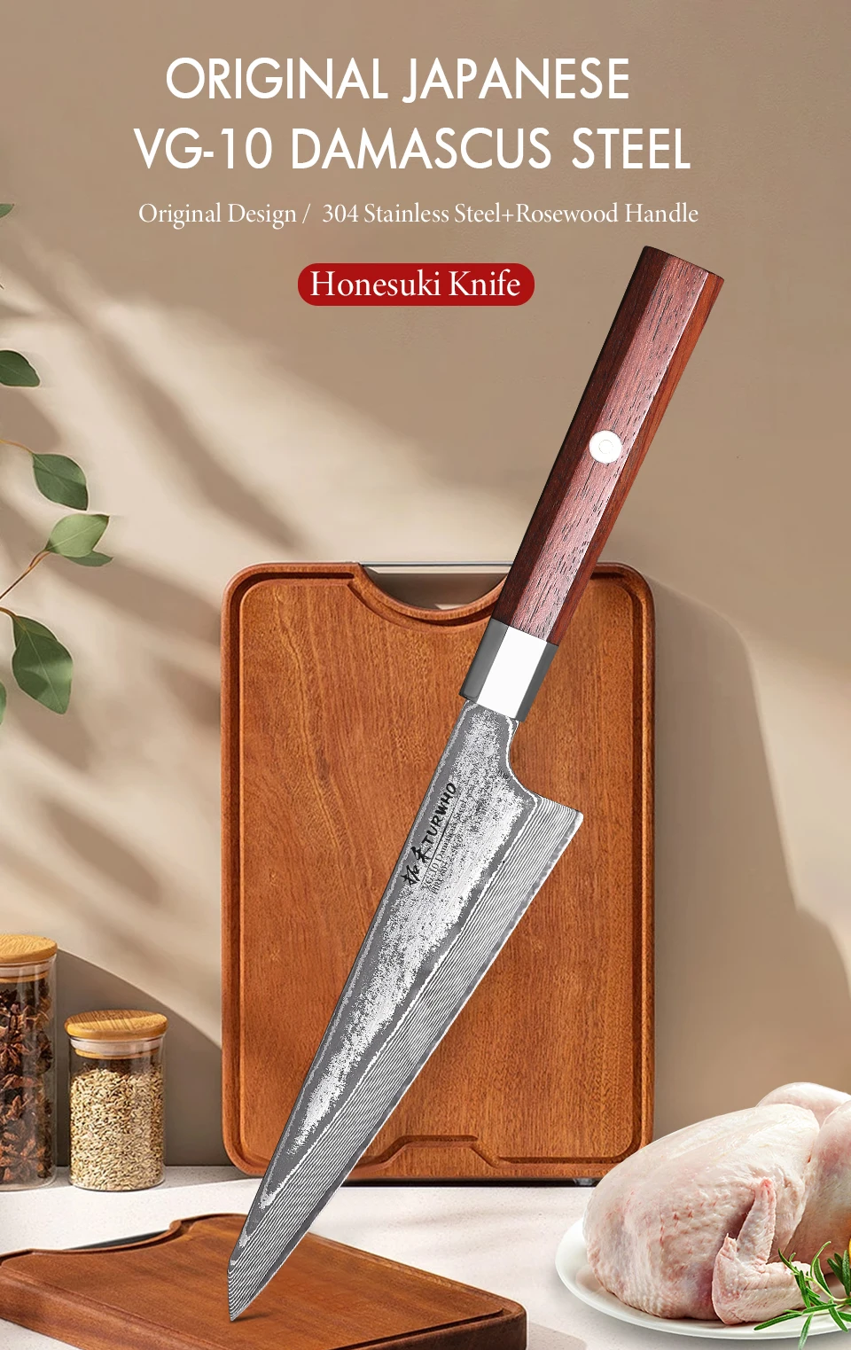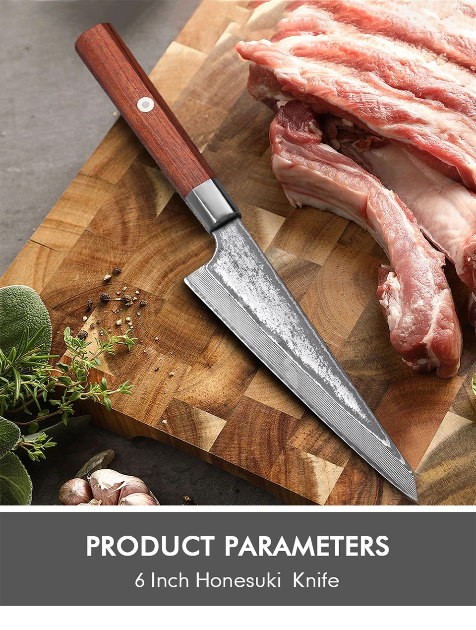 TURWHO 6" Honesuki Utility Knife Damascus Steel Professional Japanese Chef Knives Kitchen Chicken Boning Handmade Cooking Tools