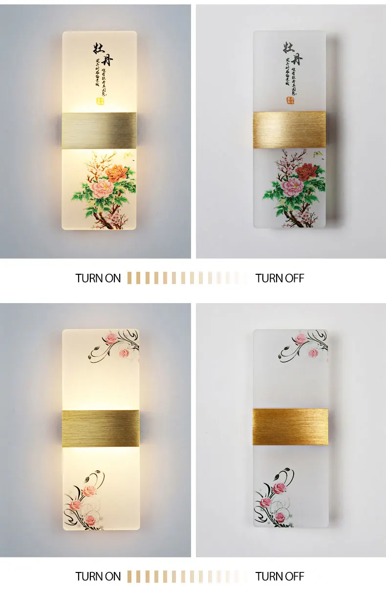 6W 10W Acrylic Indoor Wall Lamp New Chinese Style LED Printing Wall Light Bedroom Living Room Balcony Bedside Lights AC85-265V
