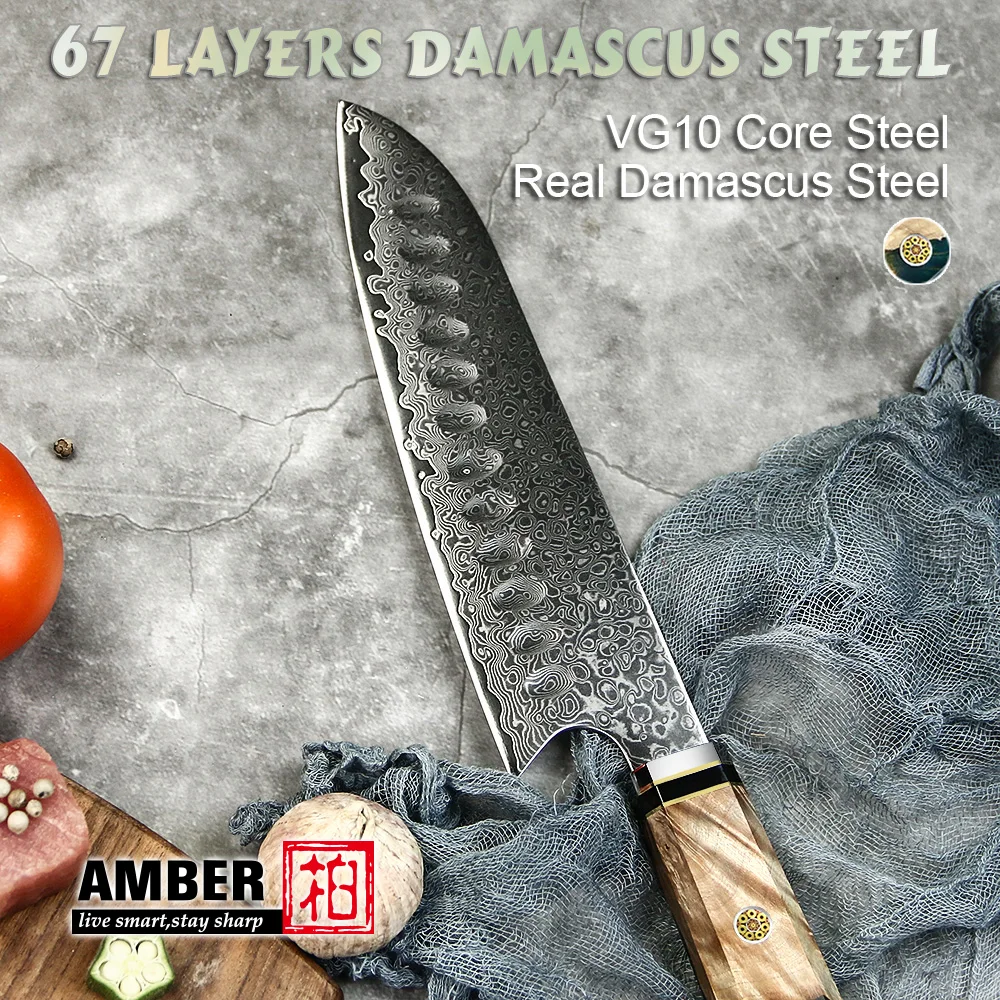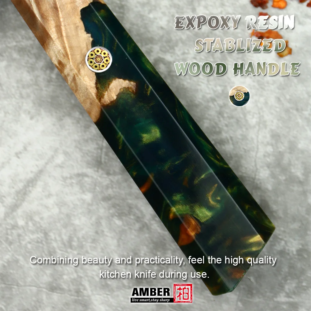 Amber Knife-67Layers VG10 Damascus Steel with Resin Stablized wood Handle