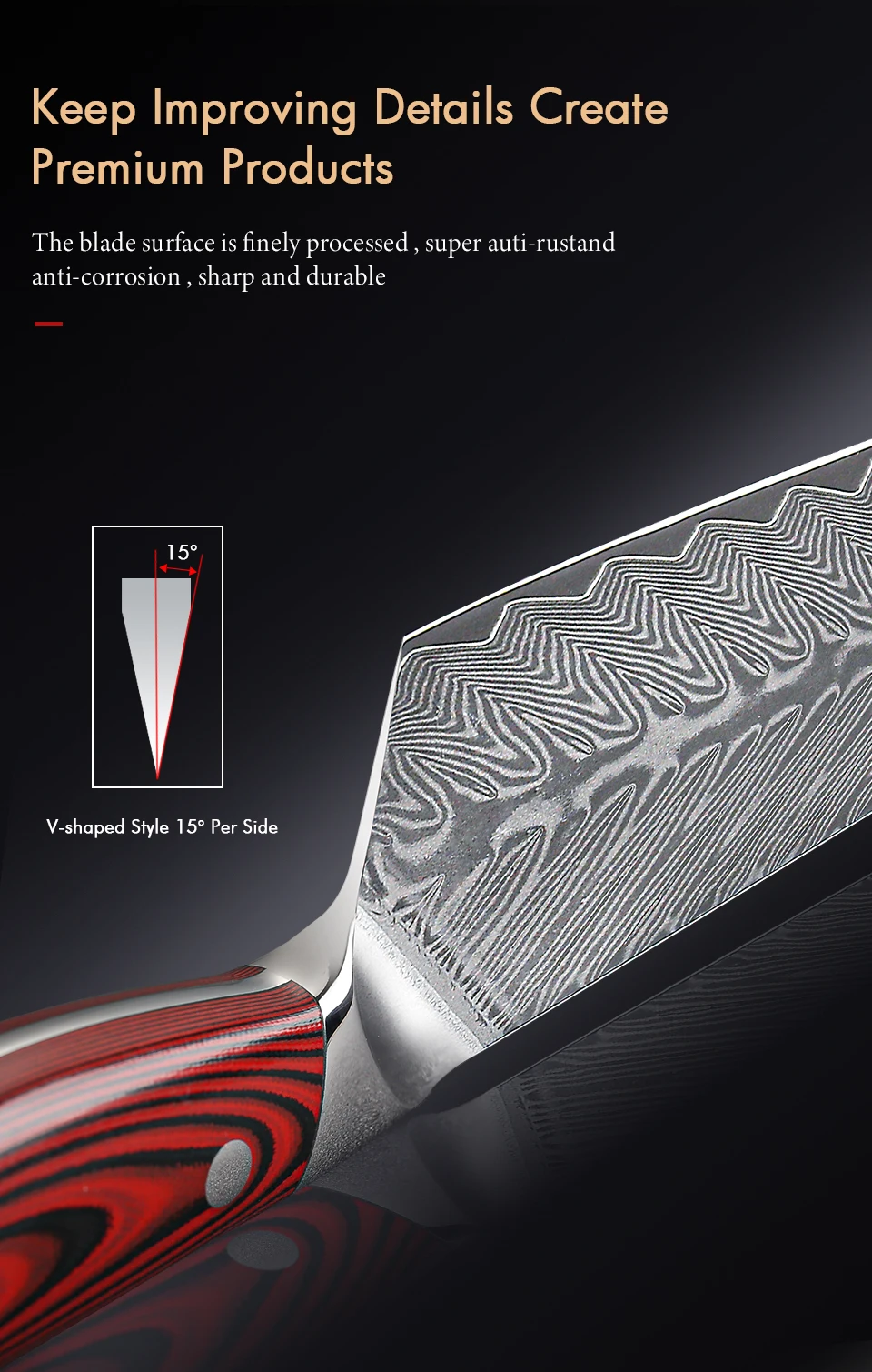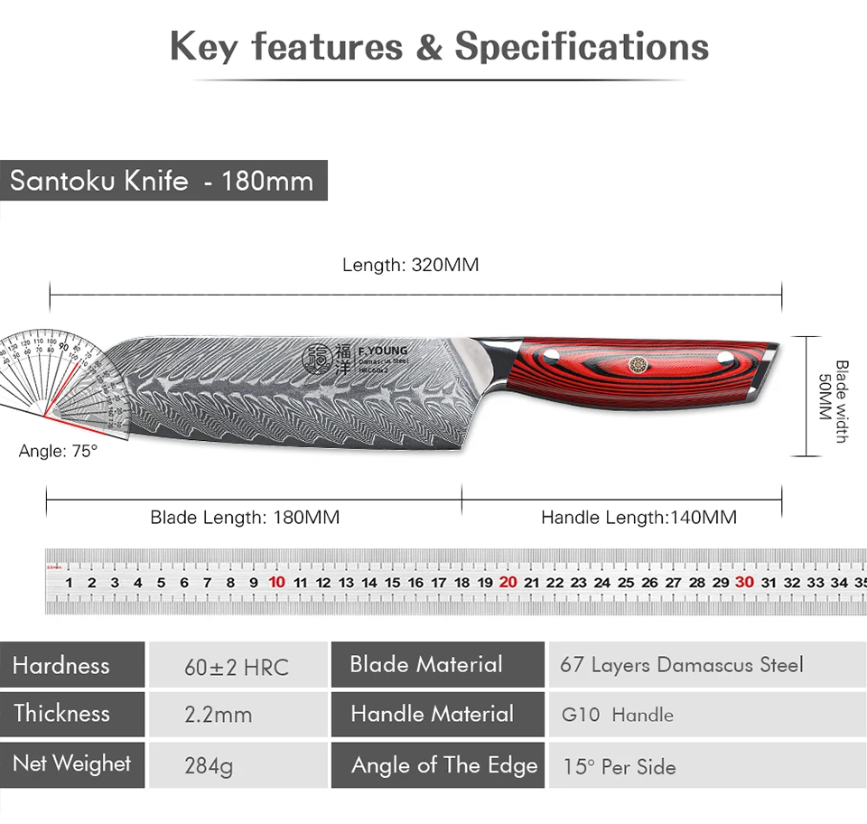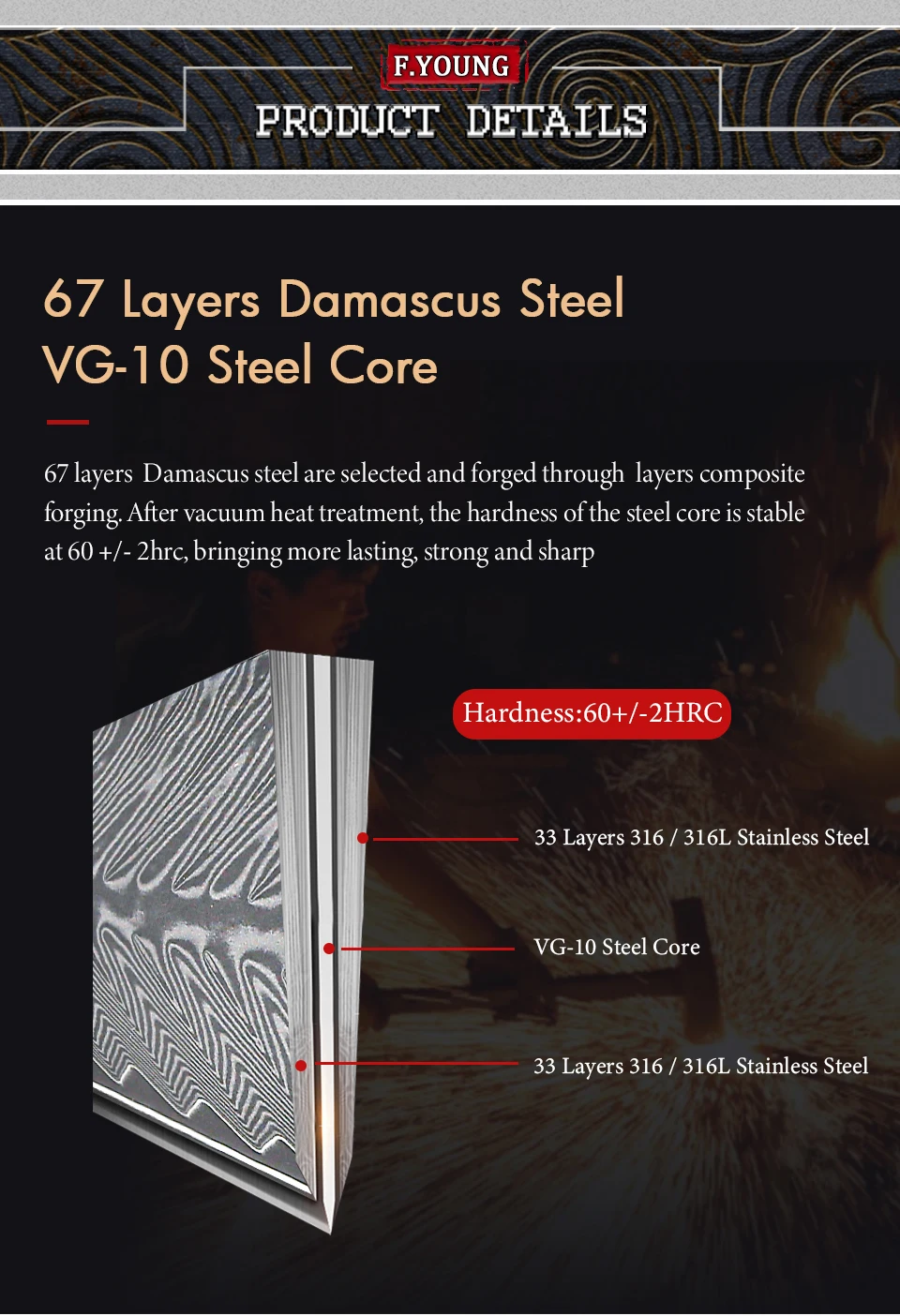 F.YOUNG 7 Inch Japanese Chef Santoku Knife 67 Layer Damascus Steel Ultra Sharp Blade Meat Vegetable Professional Kitchen Knife