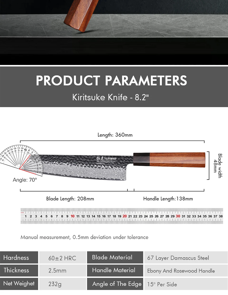 TURWHO 8.2-inch Japanese Kiritsuke Chef Knife Handmade Damascus Steel Kitchen Knives Sharp Slicer Meat Cleaver Pro Cooking Tools