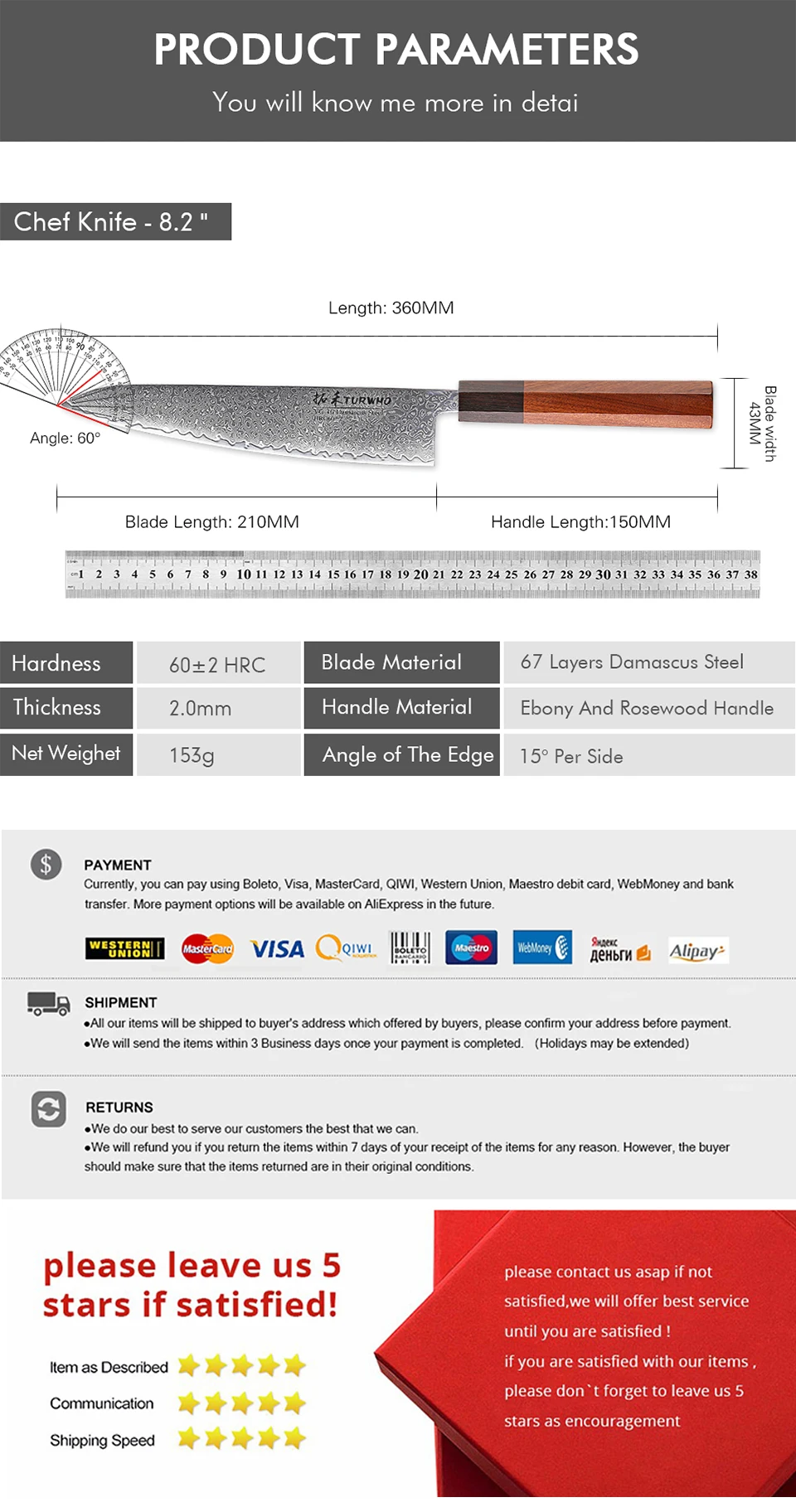 TURWHO 8.2-inch Japanese Gyuto Chef Knife VG10 Damascus Steel Hand Forged Cleaver Kitchen Knives Sharp Professional Cooking Tools