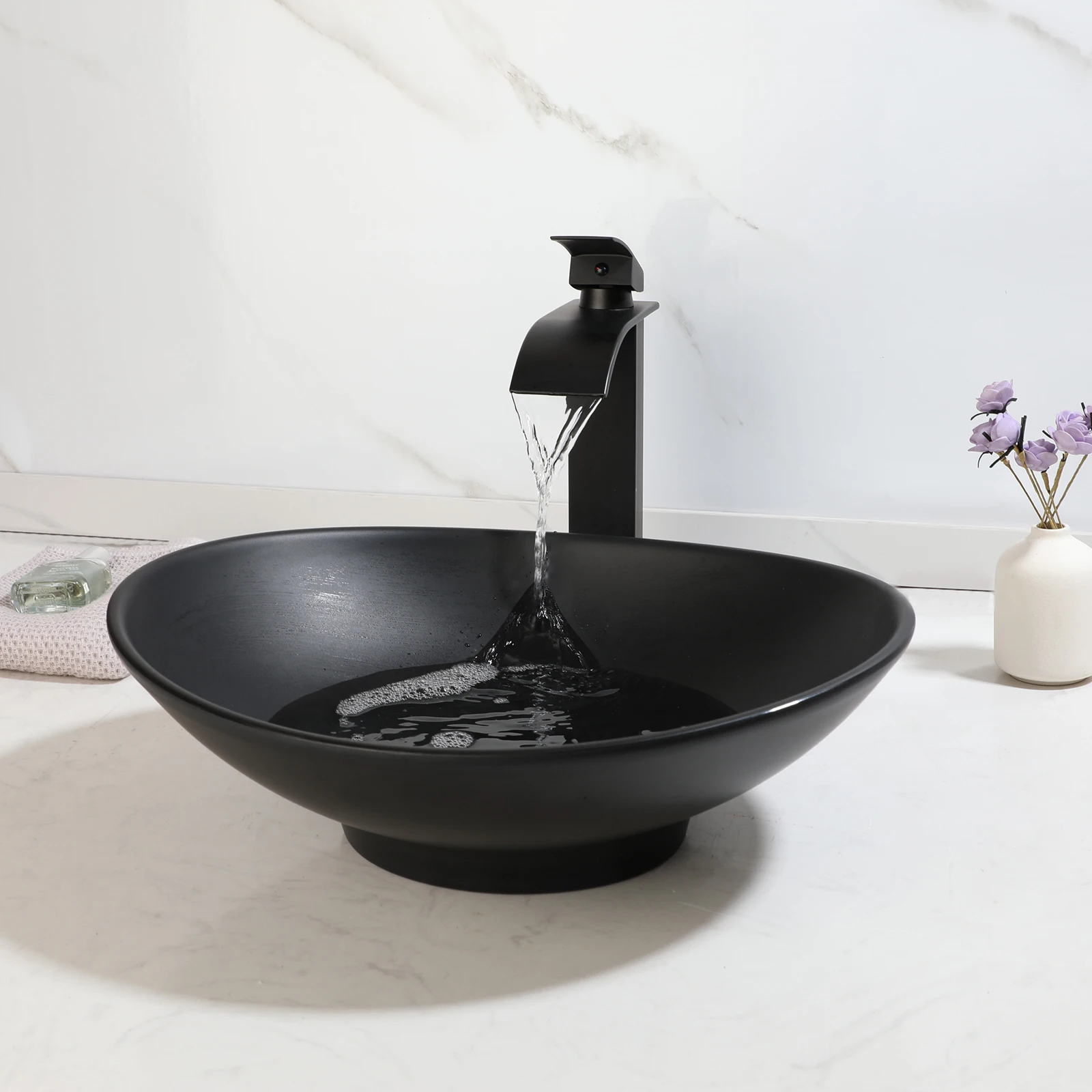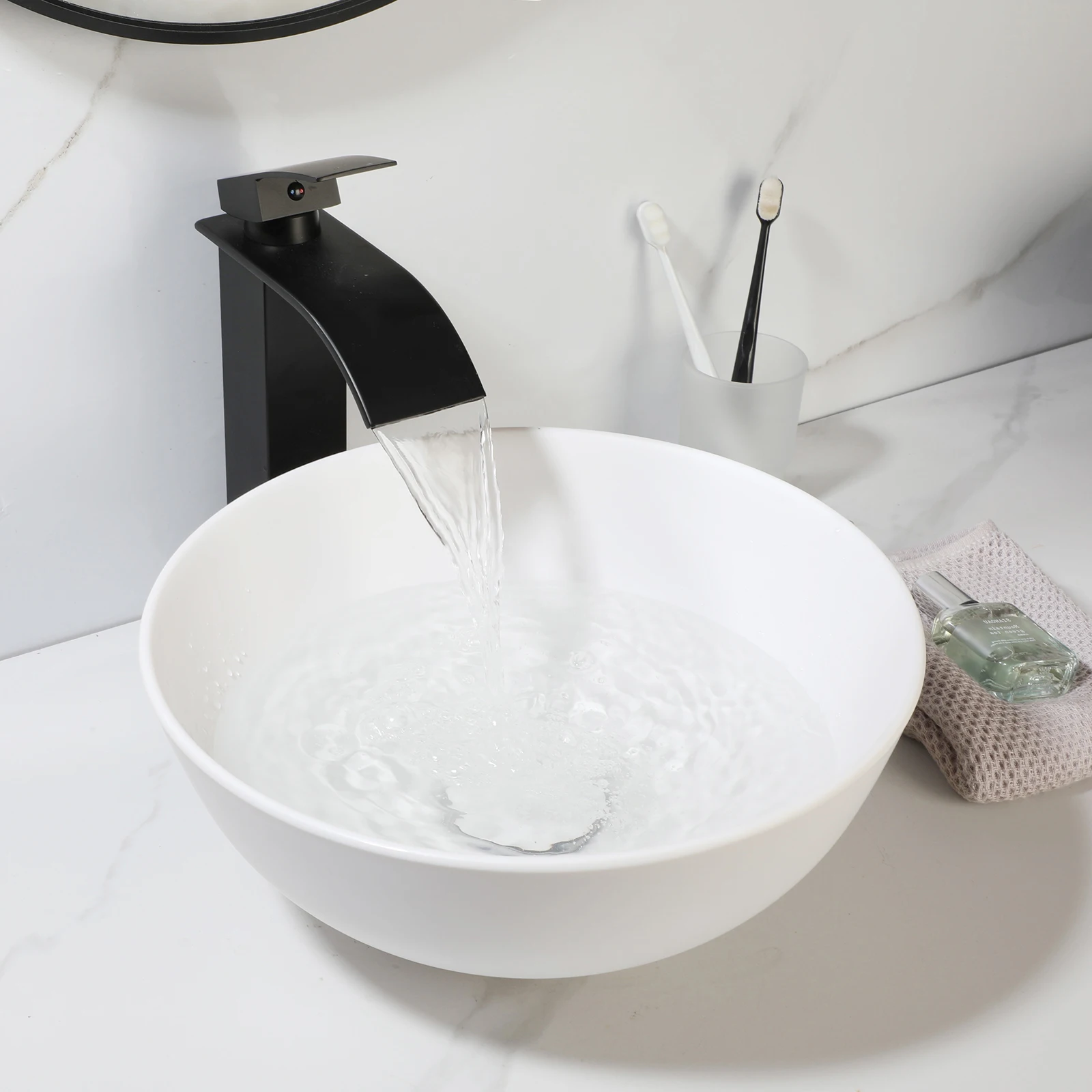 - 【Modern Design】Designed in the language of modern art for a sleek look, Our bathroom sinks are simple white with an elegant black high faucet, adding a touch of elegance and sophistication to your bathroom.