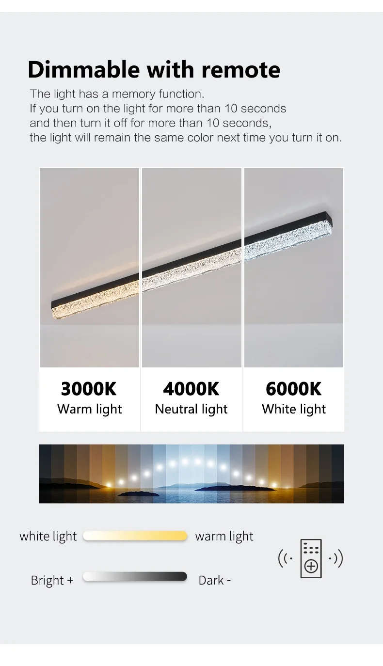 Color Tempeature: Warm light(2700K-3500K) No remote,Neutral light(4000K-4500K) No remote,Cool light(6000K-6500K) No remote,Dimmable with remote