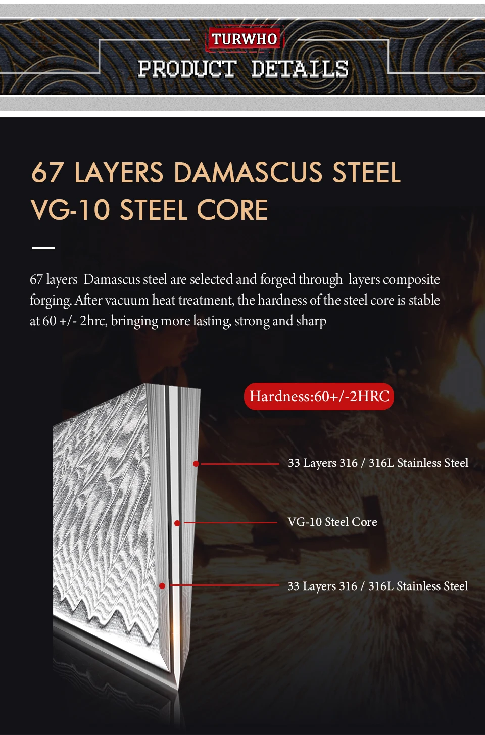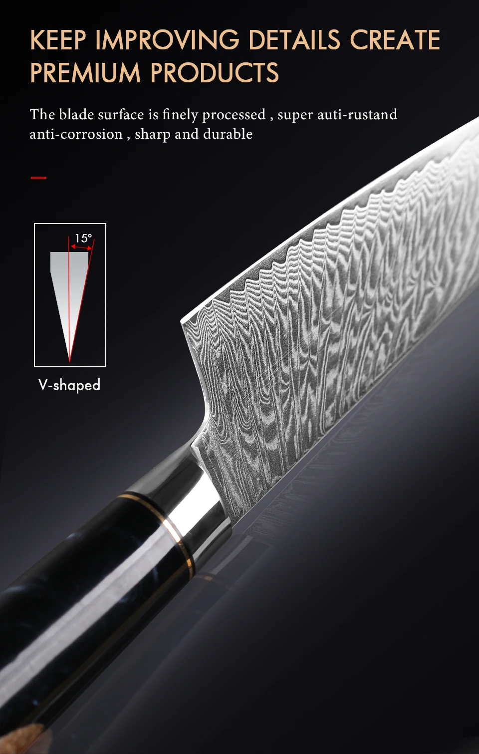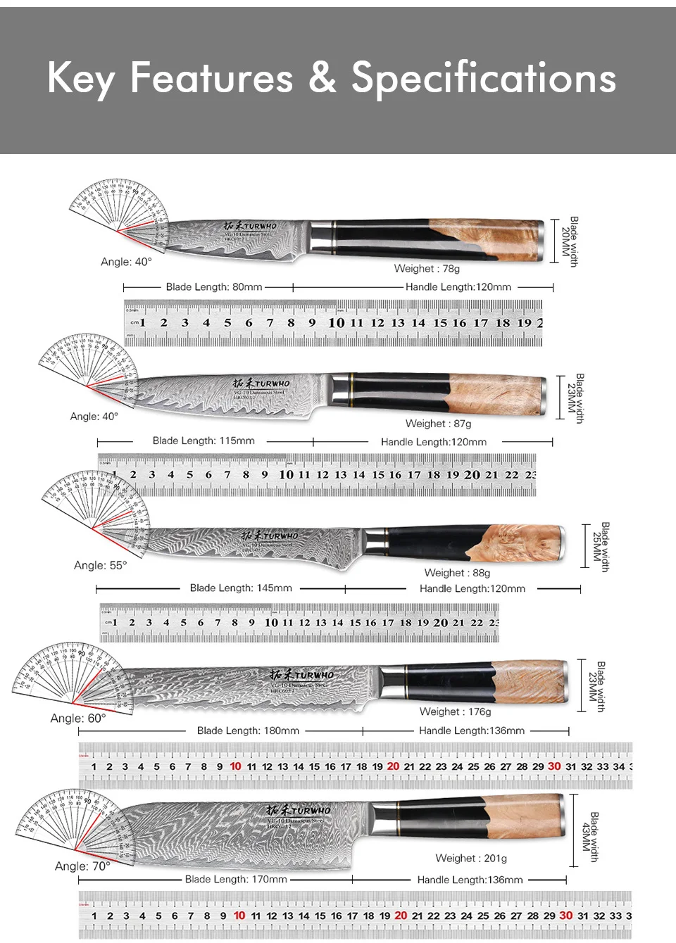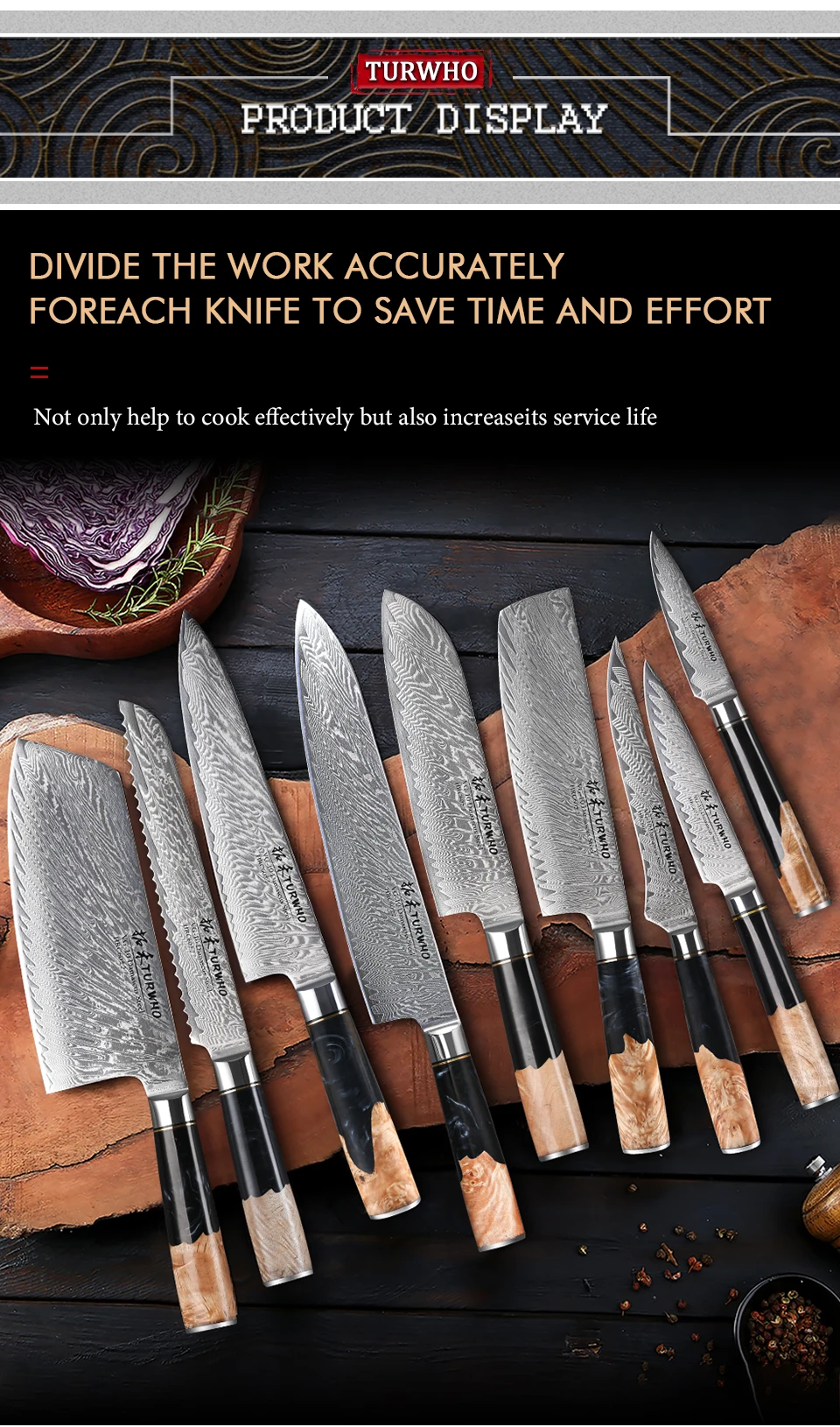 TURWHO Kitchen Knives 67 Layer Damascus Steel Chef Knife VG10 Core Japanese Santoku Bread Boning Utility Paring Knife with Resin Handle