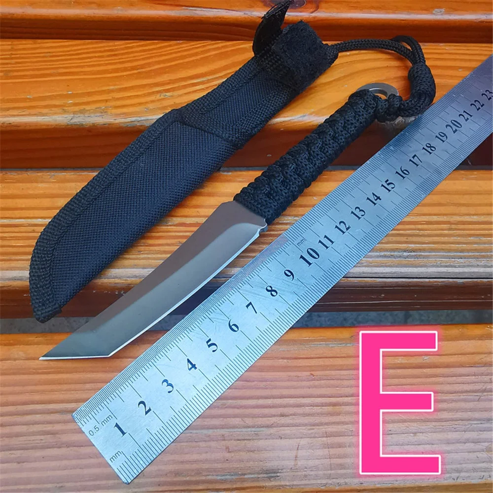 This dagger knife looks and feels really strong ,so good , very Classic and Full of arrogance edge. light weight and comfortable feel.You'll get work done in fun。 A Overall:30cm Blade length:16cm ABS Handle B Overall:30cm Blade length:16cm ABS Handle C Overall:30cm Blade length:16cm ABS Handle D Overall:26cm Blade length:14cm ABS Handle E Overall:18cm Blade length:9.5cm Paratrooper rope Handle Blade thickness: 2.8mm material: 440C Blade Hardness: 57HRC Package include : 1 x knife