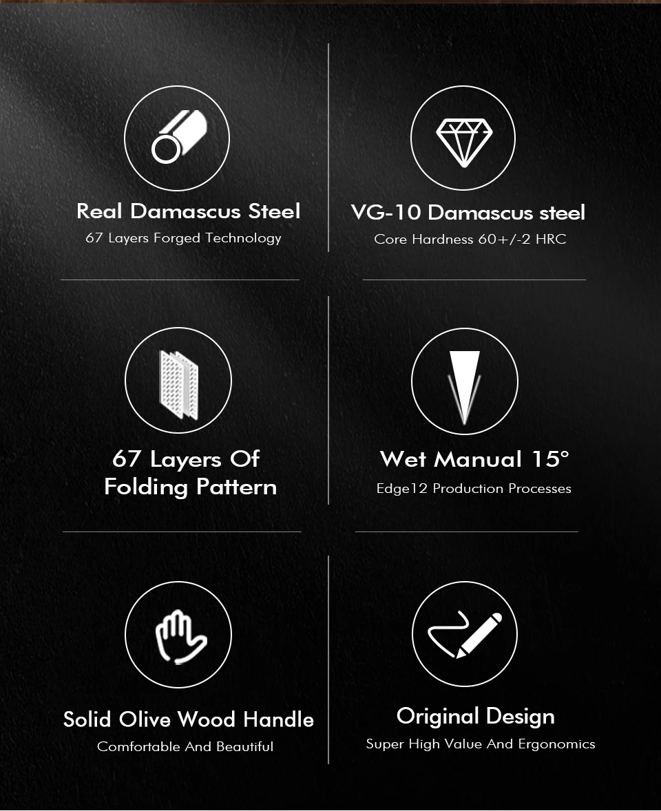 TURWHO Japanese Chef's Knives Professional 67 Layer Damascus Steel VG10 Steel Core Super Sharp Hand Forged Kitchen Accessories