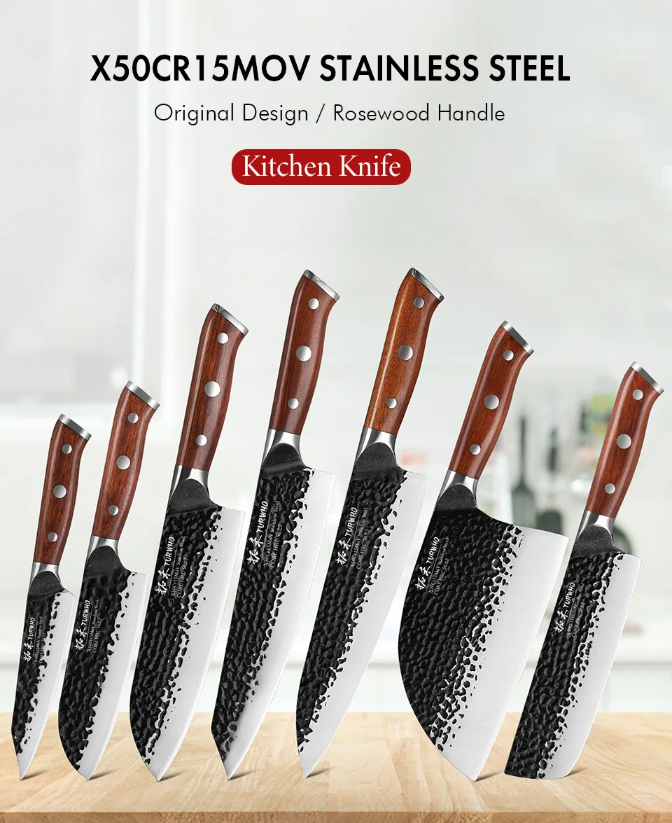 TURWHO 1-Piece Japanese Hand Forged Kitchen Knife X50Cr15MoV Stainless Steel Chef Knives Cutting Vegetable Meat Fish Fruit Tools