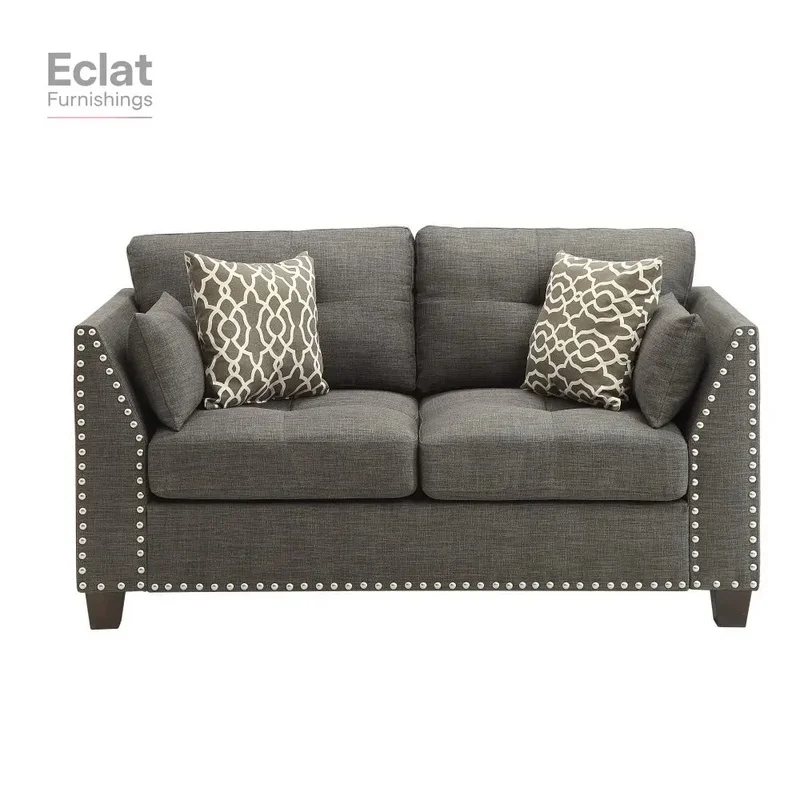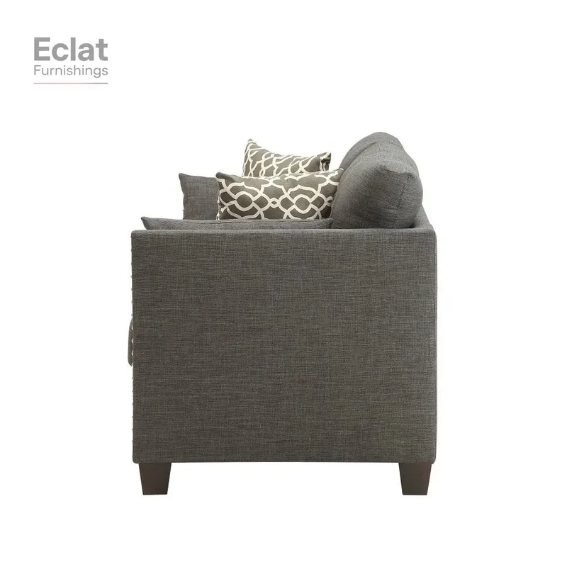 Light Charcoal Linen Loveseat with 4 Pillows