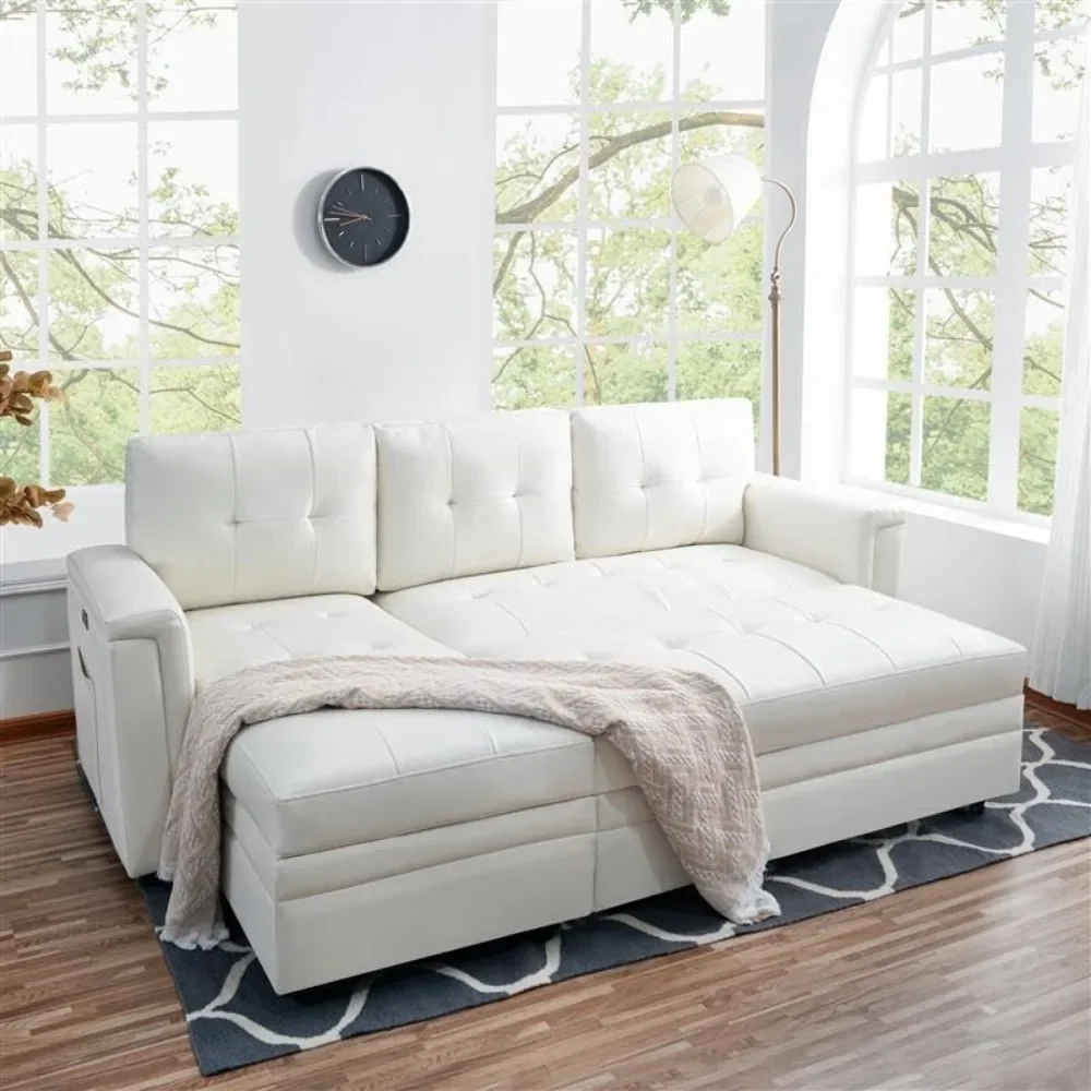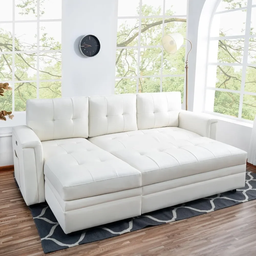 EYE-CATCHING & FUNCTIONAL: The is an eye-catching piece, designed as a couch that turns into bed with minimal effort. Comes in Luxurious Air Leather/Microfiber Fabric Upholstery to uplift your decor. Use this alternately as a sofa or bed and even eliminate the need for a separate bed. This Sectional Sleeper Sofa Pull-Out Couch sofa bed includes two USB ports to conveniently keep your devices charged while you are lounging!; Product Weight 161 lbs.; Fabric Type: Air Leather