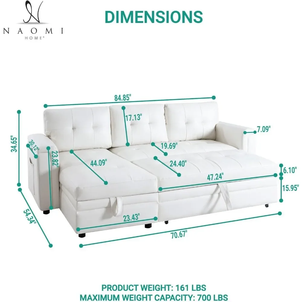 PULL-OUT SLEEPER: This Sectional Sofa comes with a sleeper, that can be pulled out from underneath the couch. The Pull Out Couch Bed Sleeper Sofa with Chaise and storage offers plenty of space for guests to sit and relax, while its storage chaise allows you to accommodate extra pillows, linens, and blankets.Seamlessly integrated within the sofa's design are strategically placed USB ports, catering to the modern lifestyle.