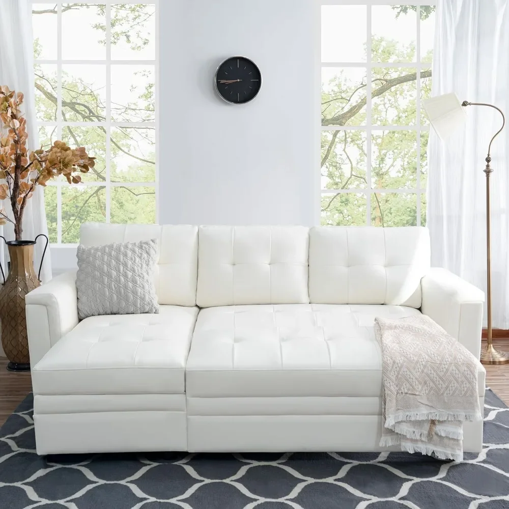 BONUS STORAGE SPACE: Unlike a normal Small Sectional Sleeper Sofa, on the Sectional Sofa Bed, lifting up the cushion on the chaise opens up a large storage space, which is convenient and easy to access on the Couch with Storage. This handy storage space available in the chaise allows you to store blankets, pillows, and a variety of items.