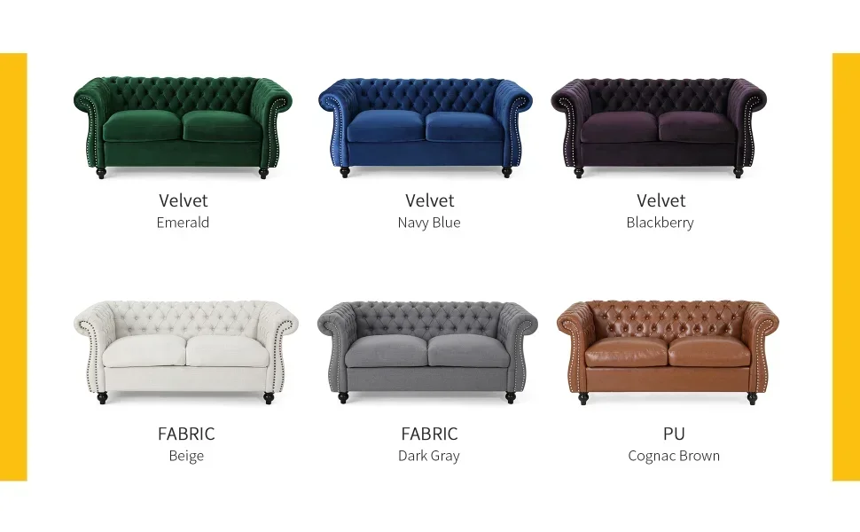 The timeless Chesterfield sofa finds new life in this update on a cherished classic - Featuring traditional rolled arms, intricately tufted and pleated upholstery, elegantly turned legs, and eye-catching nail head accents, this deeply-seated selection will instantly become the centerpiece of your living room or other indoor sitting area.