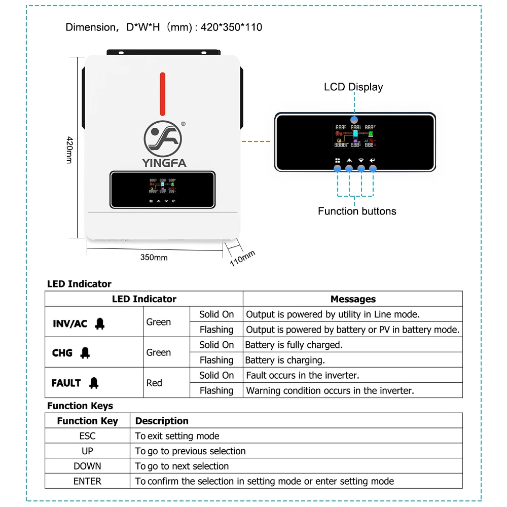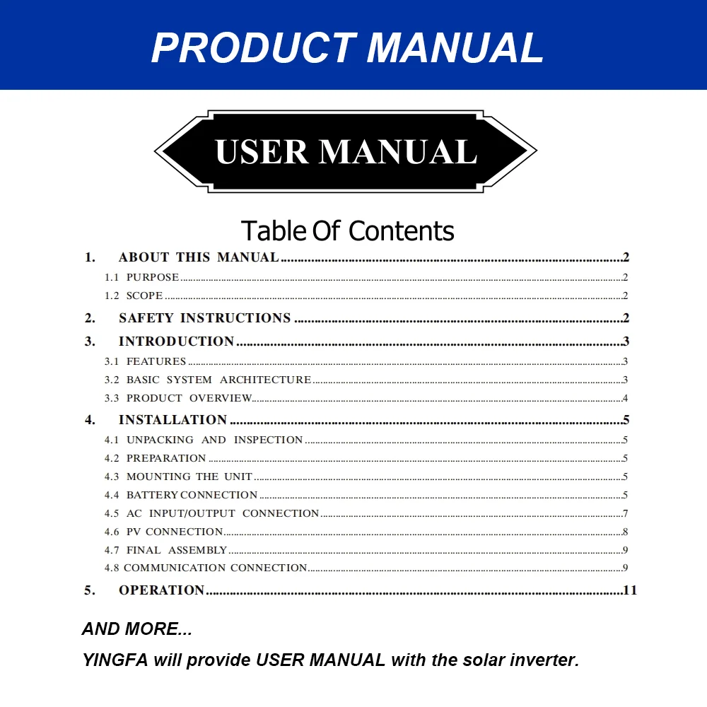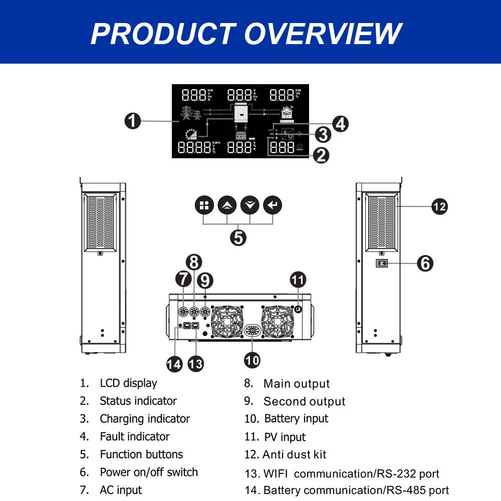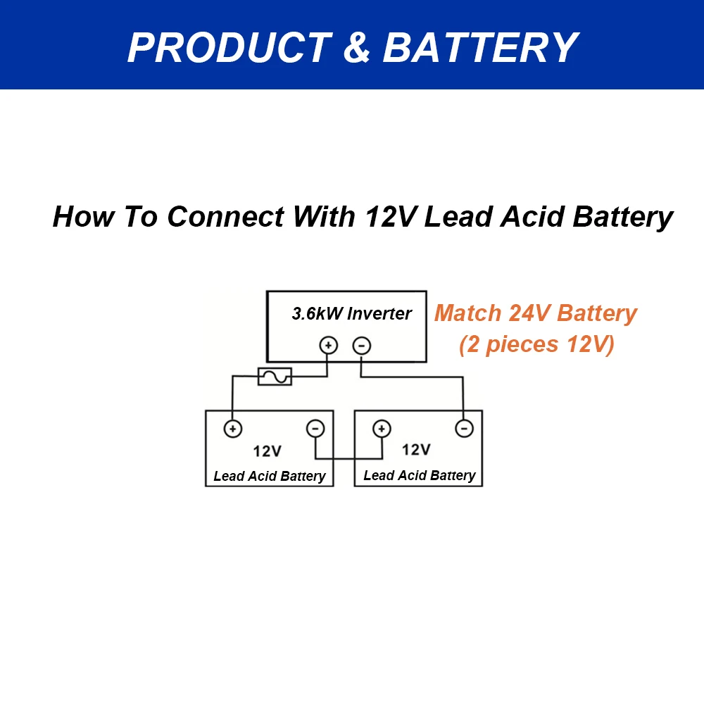 3.6kW inverter: connect to 2 pieces 12V battery.