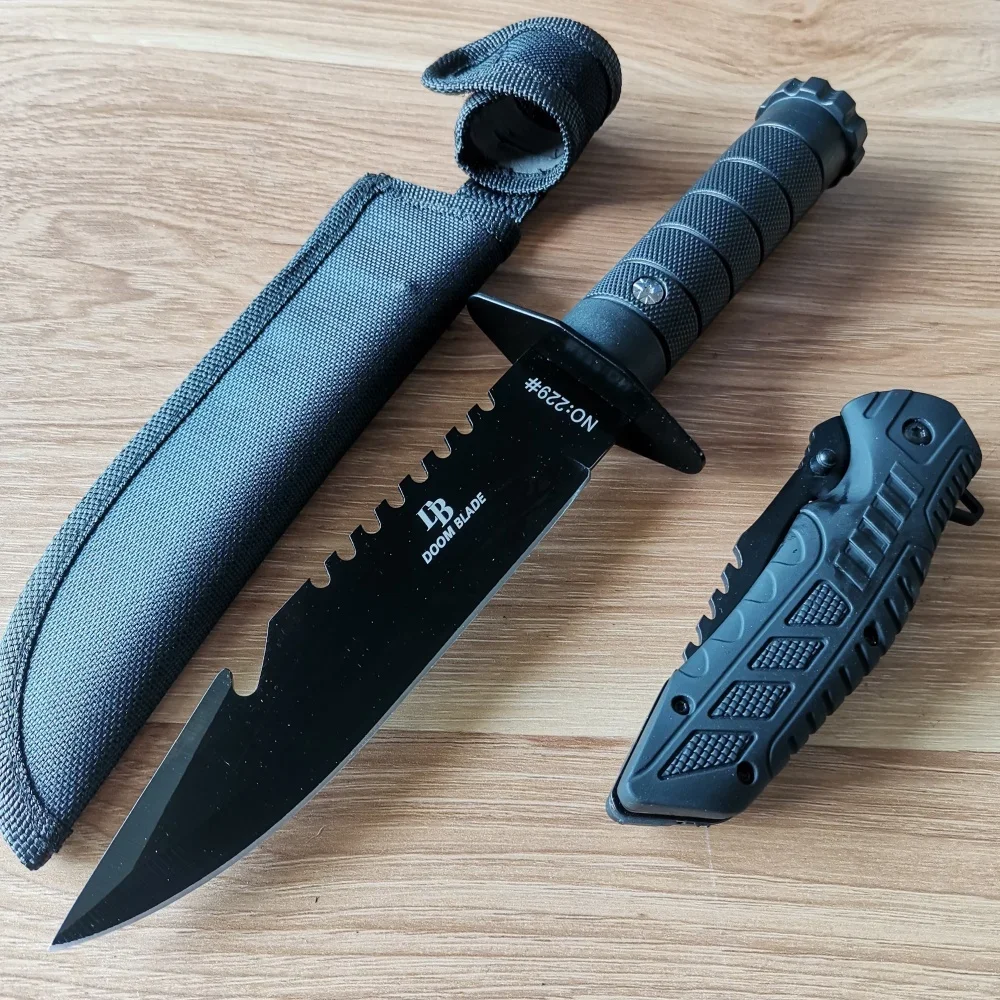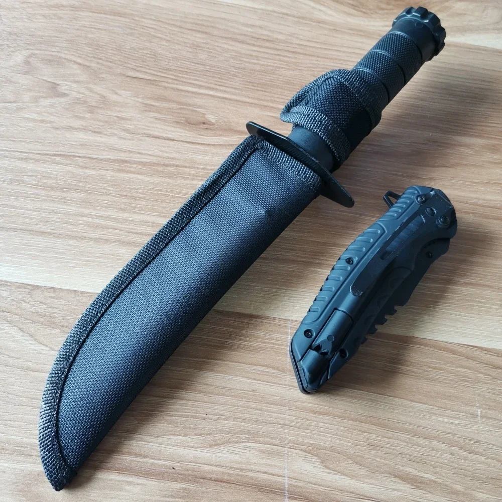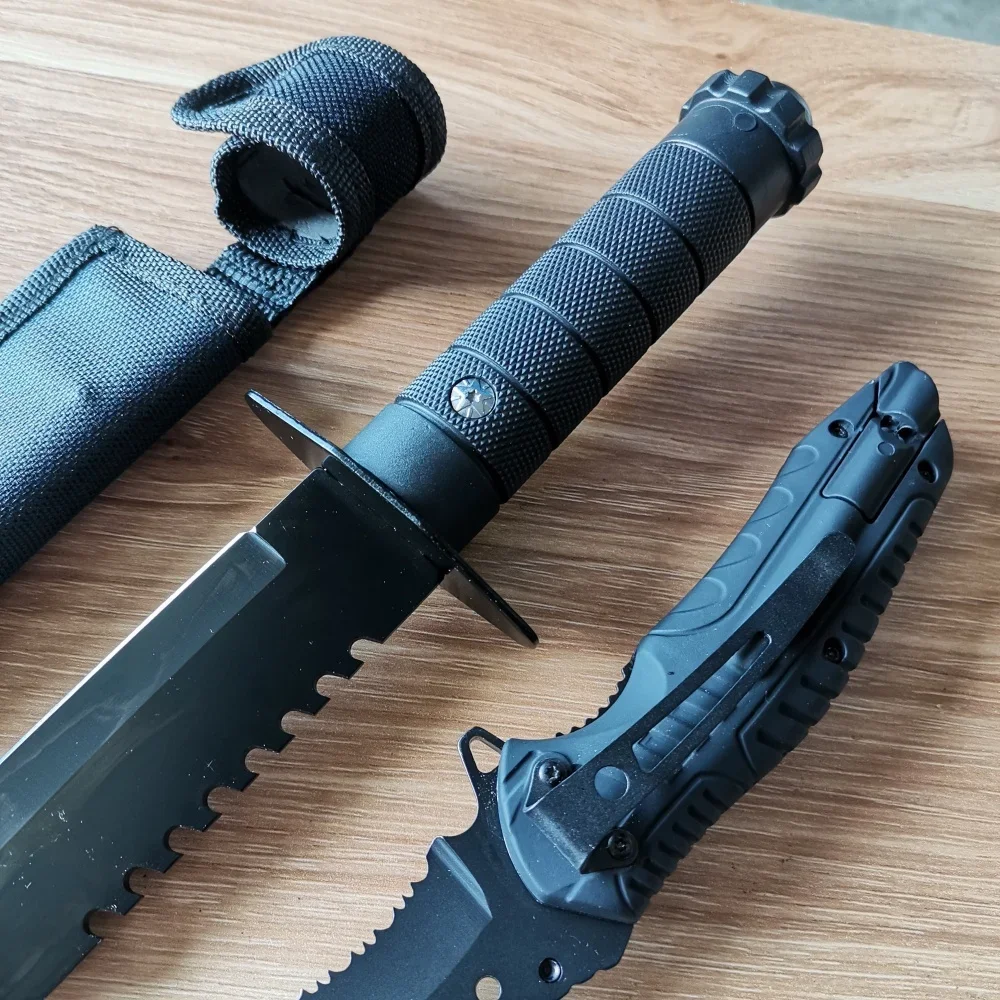 Stainless Steel Knife Set: Fixed & Folding Blades, Sheath
