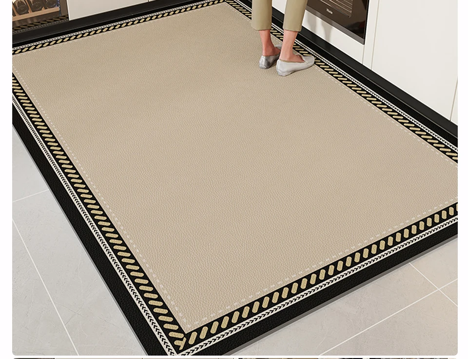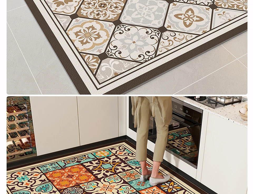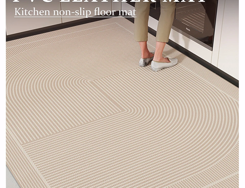The floor mat you are looking at now is professionally used in the kitchen. Its fabric is leather PVC. Its main feature is waterproof, oil-proof and non-slip. At the same time, its soft and resilient fabric can also protect the tableware from being broken due to falling.